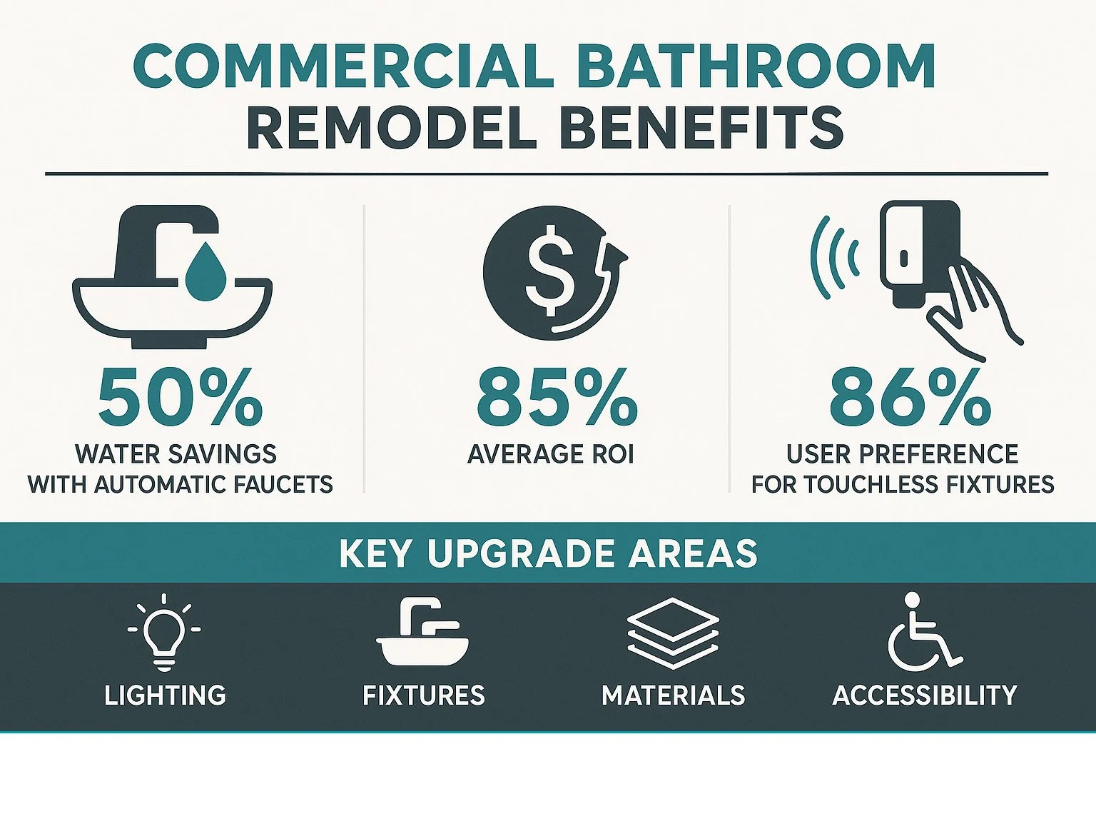Key Benefits of Commercial Bathroom Remodels: • Improved brand perception – Modern, clean facilities reflect professional standards